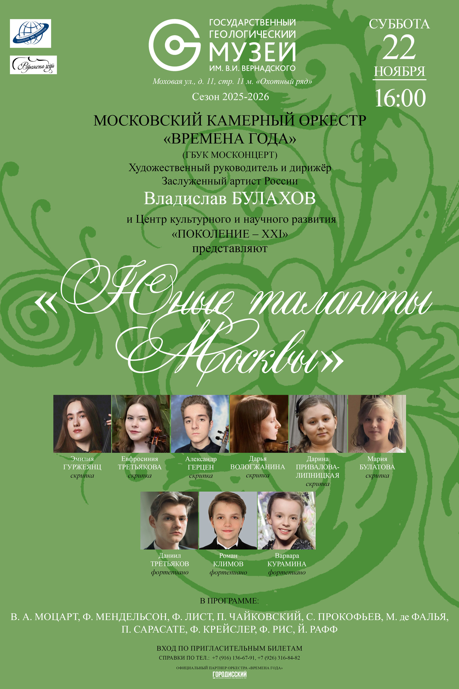 В программе Г.Ф.Гендель, И.С.Бах, В.А.Моцарт, Г. Венявский, К.М.Вебер, Й. Брамс, Н. Паганини, Ф. Мендельсон, Ж. Бизе - Ф. Ваксман, П. Чайковский, Н. Бакланова, Н. Римский-Корсаков, С. Рахманинов.