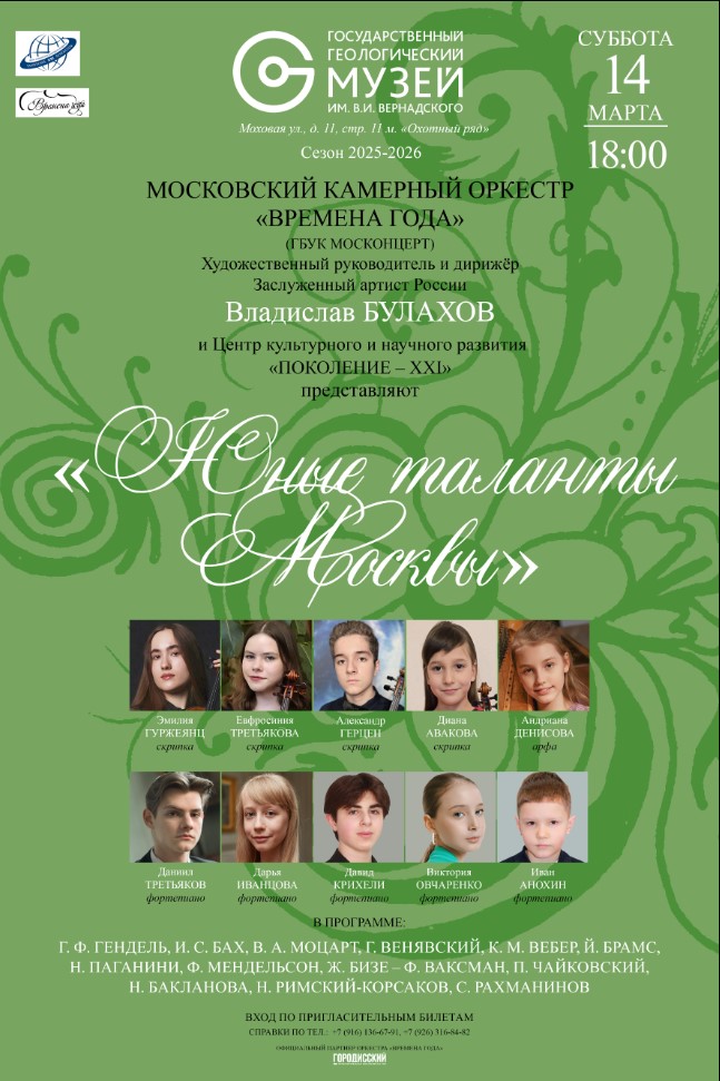 В программе Г.Ф.Гендель, И.С.Бах, В.А.Моцарт, Г. Венявский, К.М.Вебер, Й. Брамс, Н. Паганини, Ф. Мендельсон, Ж. Бизе - Ф. Ваксман, П. Чайковский, Н. Бакланова, Н. Римский-Корсаков, С. Рахманинов.